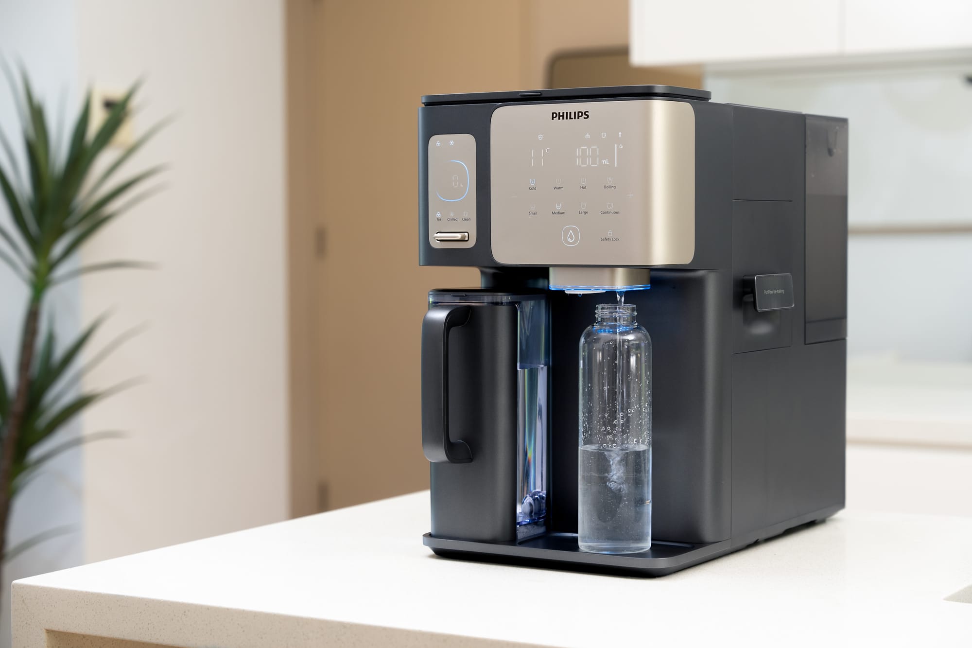 Philips portable countertop water stations with premium Aquaporin Inside™ reverse-osmosis water purification and/or high-performance micro filtration. Blending purified chilled water, ice-making, ice shaving and/or instant heating capabilities. No plumbing required.
